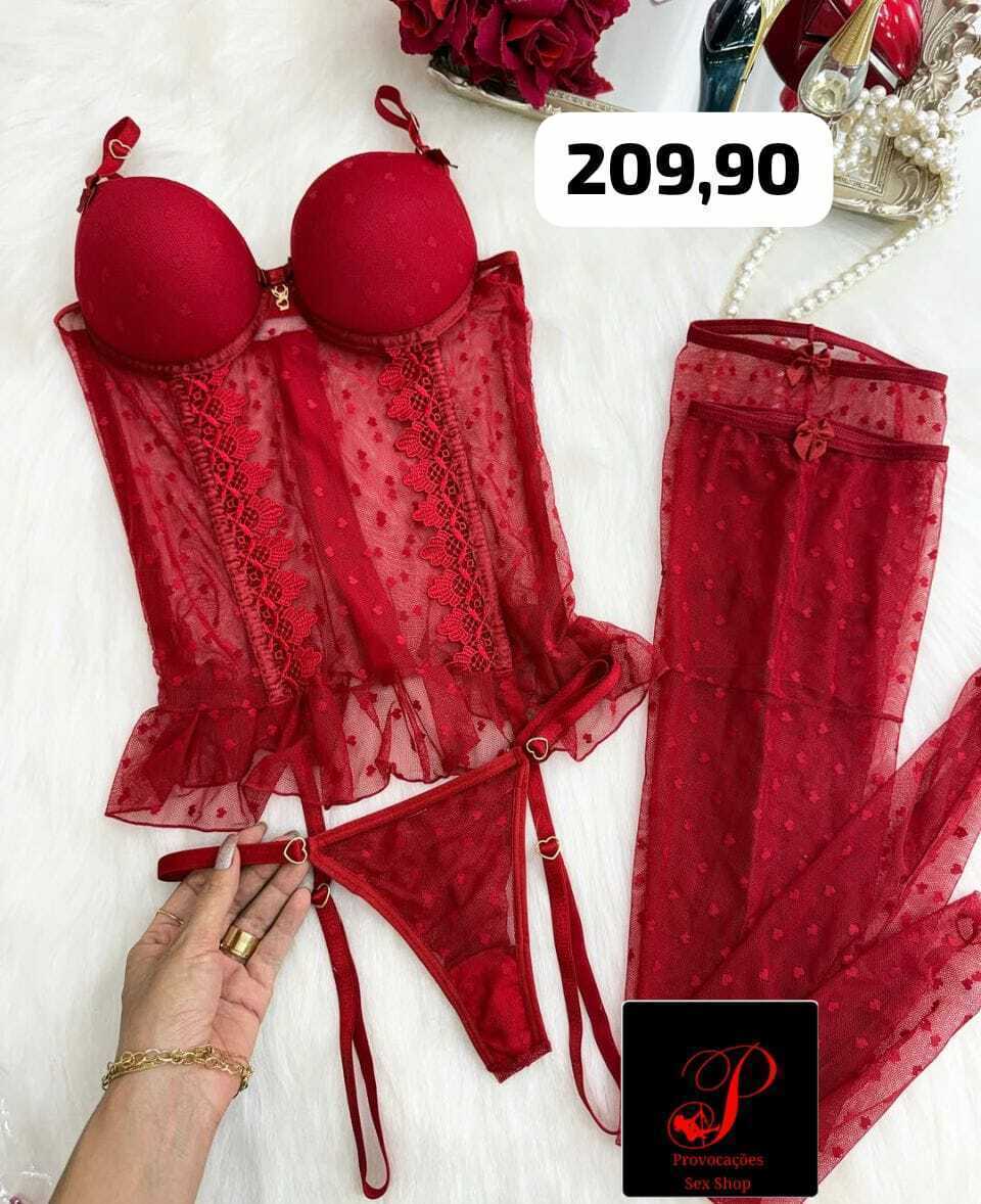 Espartilho Romances - é uma peça sofisticada feita inteiramente em tule com estampa de coração, que traz um charme delicado e romântico. Acompanha meia em tule e calcinha com regulador de coração anti-alérgico, ajustável do P ao GG, garantindo conforto e ajuste perfeito. O destaque fica por conta dos laços que adornam a peça, conferindo um toque especial e elegante para suas ocasiões mais íntimas.